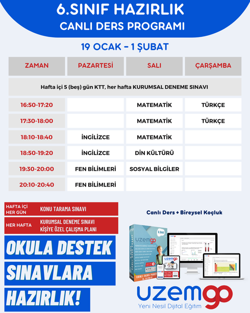 UzemGO 6.Sınıf Canlı Sömestir Kampı + Birebir Rehberlik Desteği